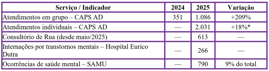 Para Delmah Pedra, esses dados refletem uma população antes invisível. Cada atendimento individual, cada internação, cada ocorrência do SAMU representa uma família em sofrimento, que só chegou à rede porque a prevenção primária falhou.